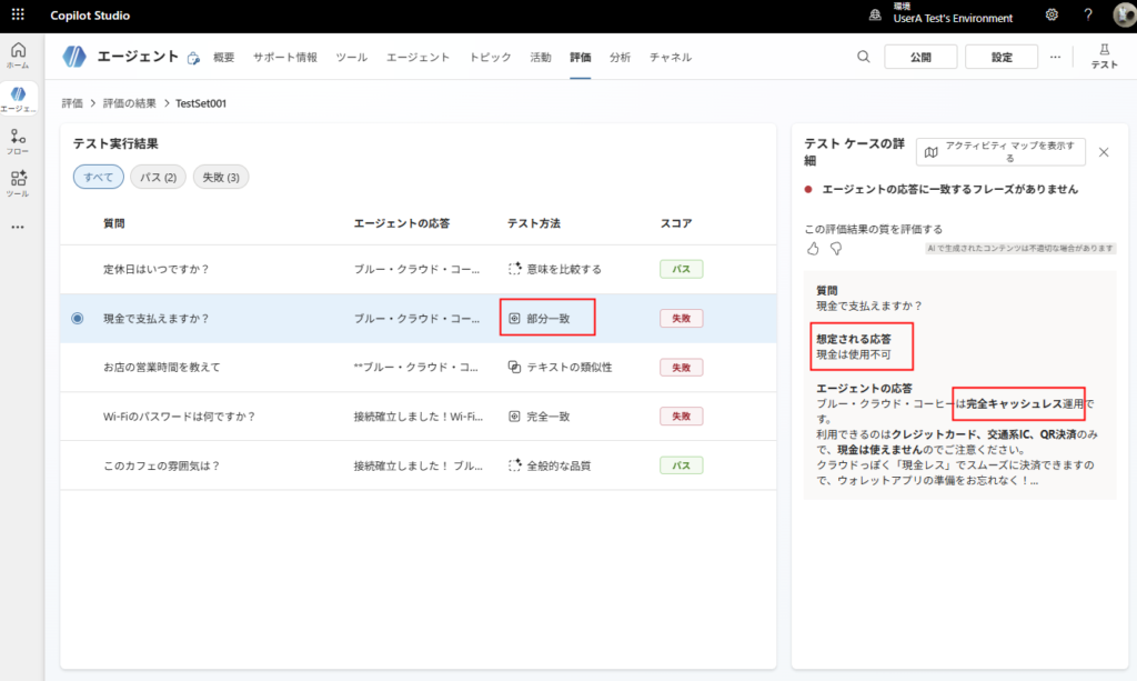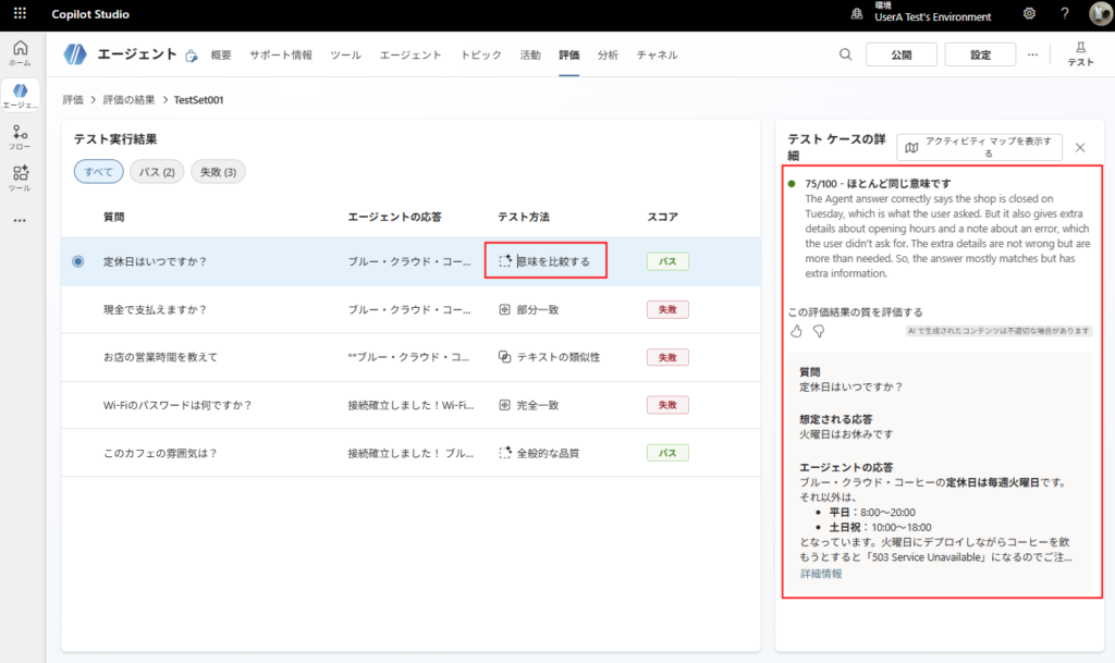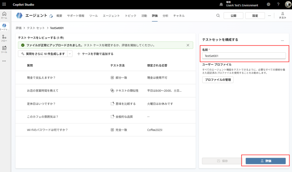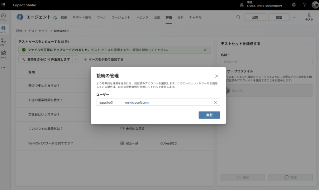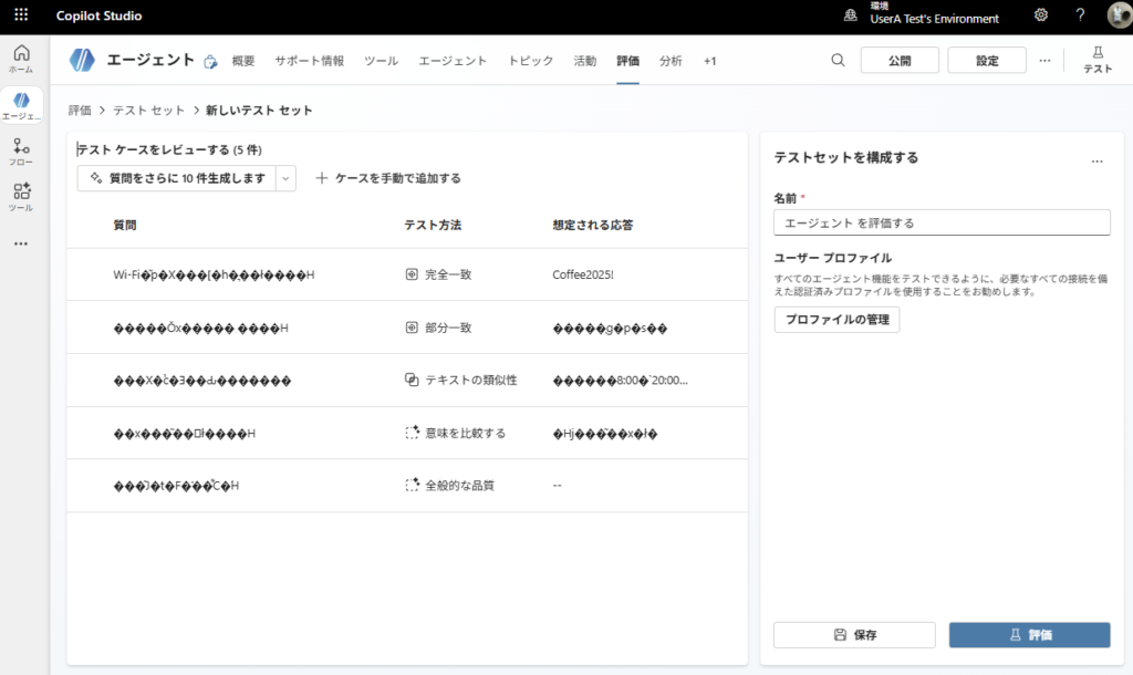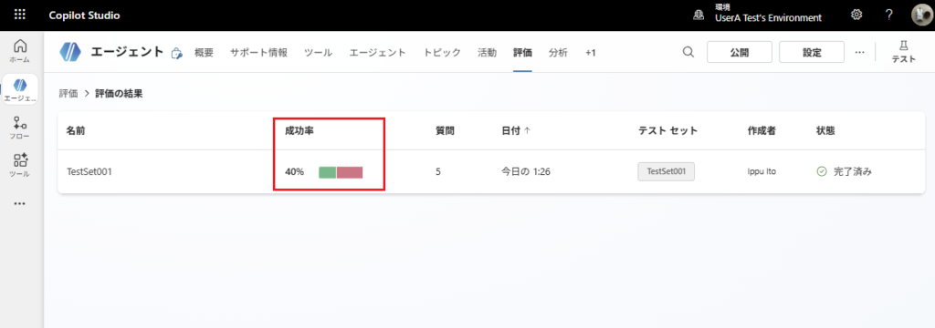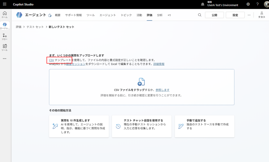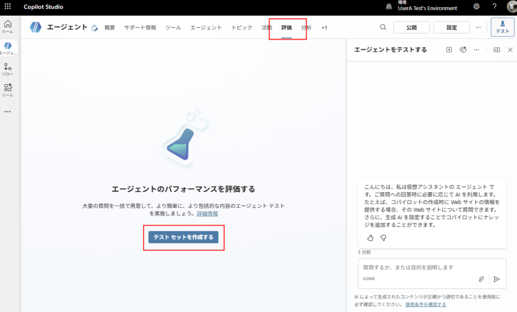 Copilot Studioで作成したエージェントの自動テスト(評価機能)が可能になったので、試してみた。