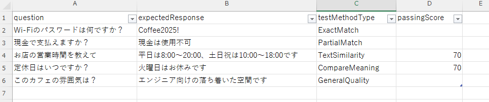 プロンプトの微修正や、ナレッジ(SPOなど)の更新を行った際も、このテストを回すだけで「以前の回答が壊れていないか」を即座に検知できるので、実運用では導入必須レベルでおすすめ。