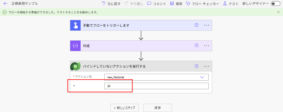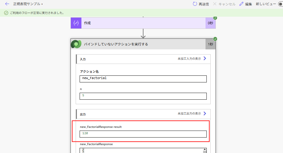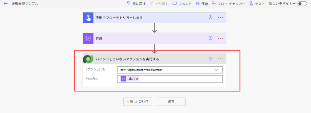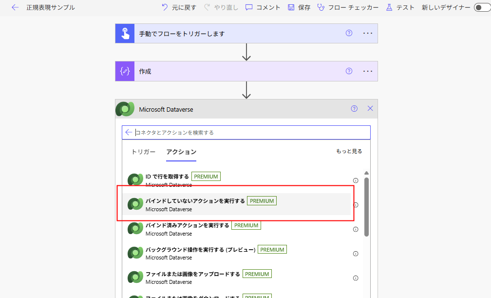 作成した関数を、Power Automateから呼ぶときは「バインドしていないアクションを実行する」を使用。