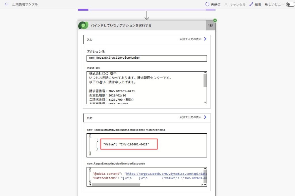 無事、正規表現で請求書番号が抽出できる。