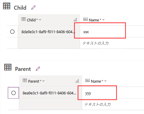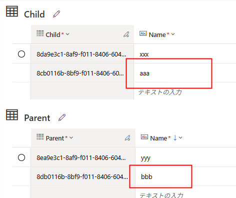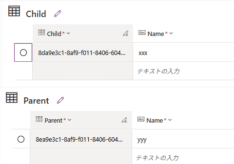 例えばこんな感じでChildテーブルとParentテーブルにレコードを追加するだけの関数を作成。