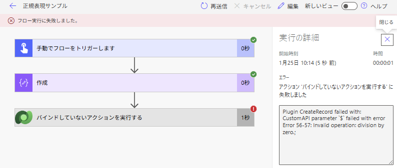 ちなみに同じこと(途中でエラー)をキャンバスで実行すると、