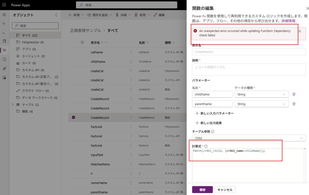 Tips2:Patchでレコードを追加しようとすると関数の保存ができない