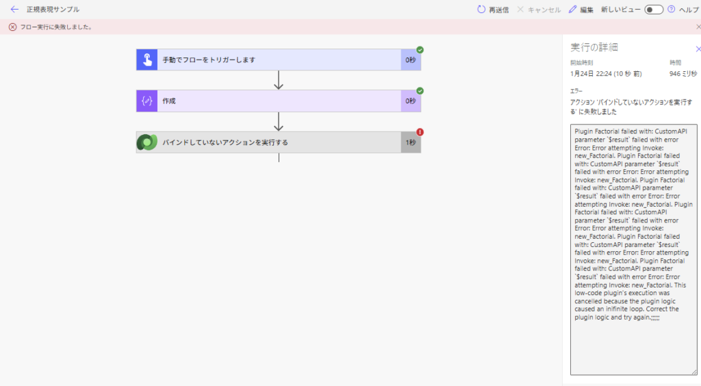 Plugin Factorial failed with: CustomAPI parameter $result failed with error Error: Error attempting Invoke: new_Factorial. This low-code plugin’s execution was cancelled because the plugin logic caused an inifinite loop. Correct the plugin logic and try again.;;;;;;