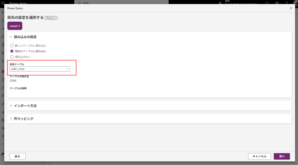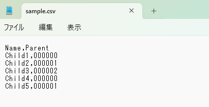こんな感じで、先ほど設定した親テーブルのキー列の値を含むCSVを用意して、
