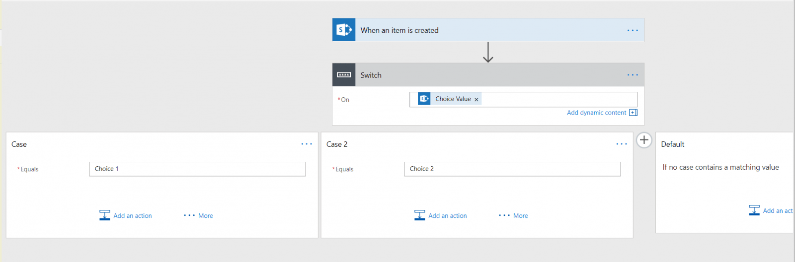 Power AutomateのスイッチにSharePointリストの選択肢列を使用したいとき、少し手間取ったのでメモ。