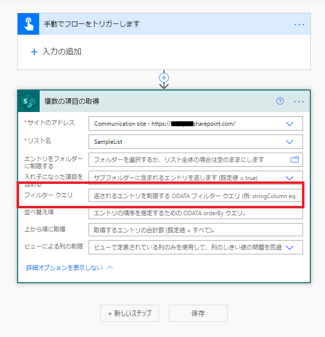 However, Excel filter queries do not support “greater than or equal to” or “less than or equal to” (ge, le). If you try to use these operators, an error occurs: 【Invalid filter clause: unsupported operation. Only single ‘eq’, ‘ne’, ‘contains’, ‘startswith’ or ‘endswith’ is currently supported.】